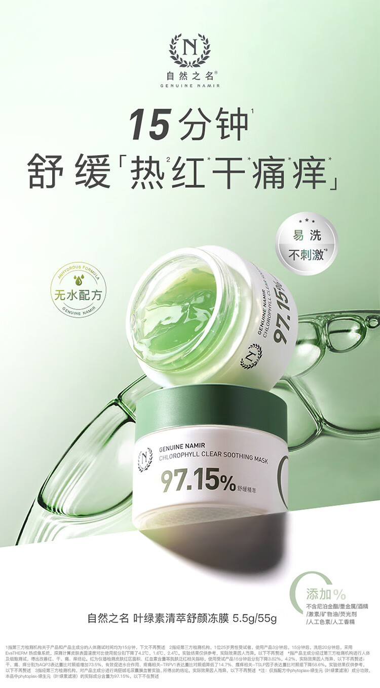 自然之名 叶绿素清萃舒颜冻膜 55g 舒缓降燥 保湿降温