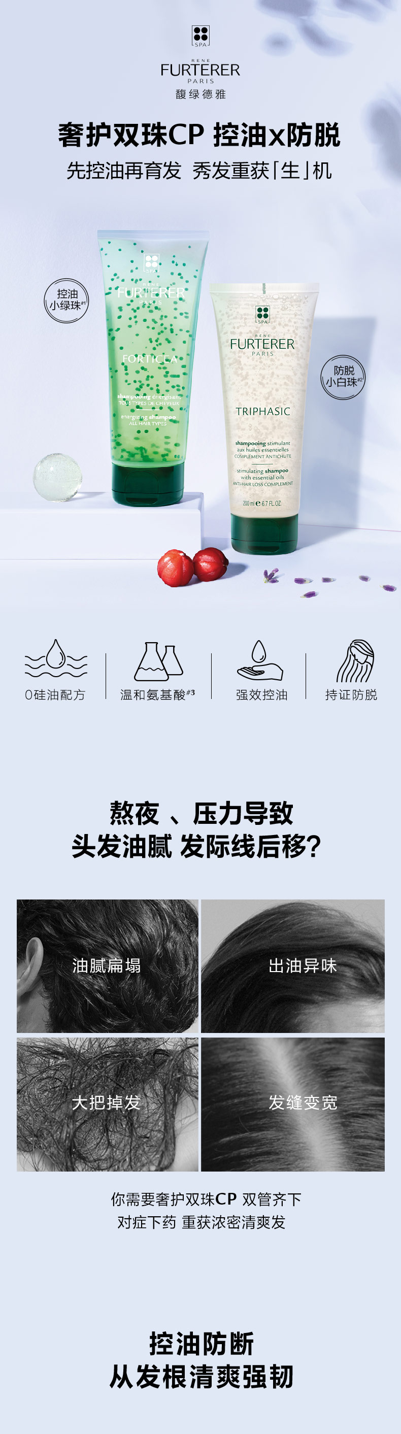 馥绿德雅(RENE FURTERER)小绿珠200ml+小白珠200ml(防脱育发 清爽控油强韧 无硅油)法国