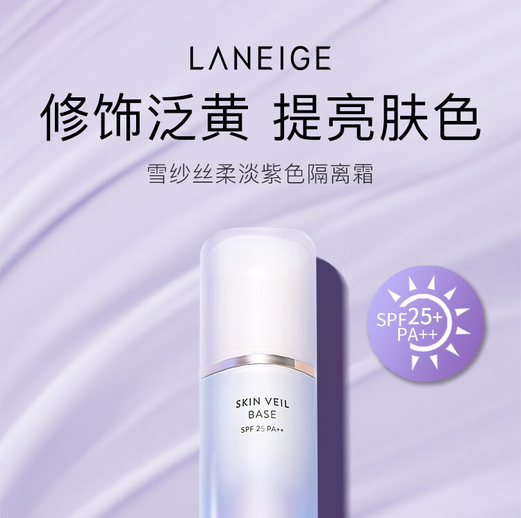 兰芝(LANEIGE)隔离霜妆前乳 雪纱丝柔淡紫色30ml (修饰泛黄提亮肤色)礼物女