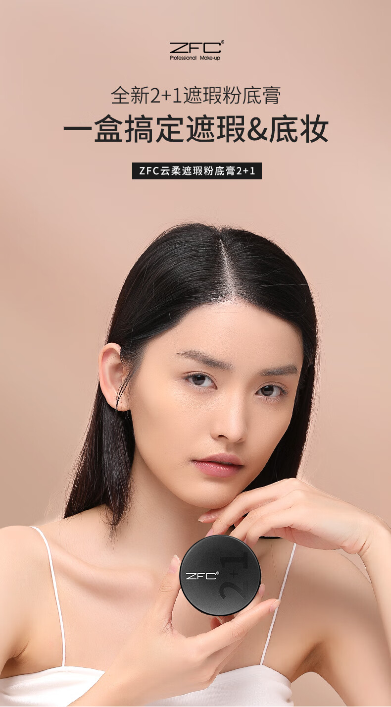 ZFC云柔遮瑕粉底膏2+1遮瑕膏控油持久粉底保湿裸妆 自然色