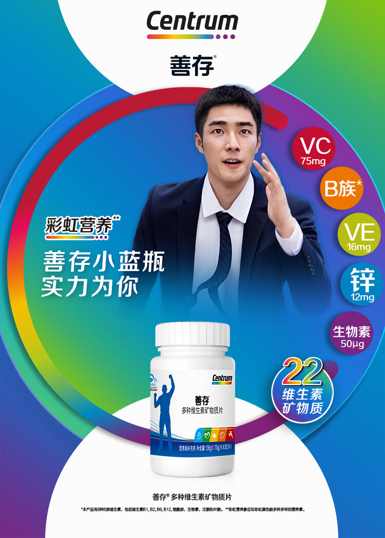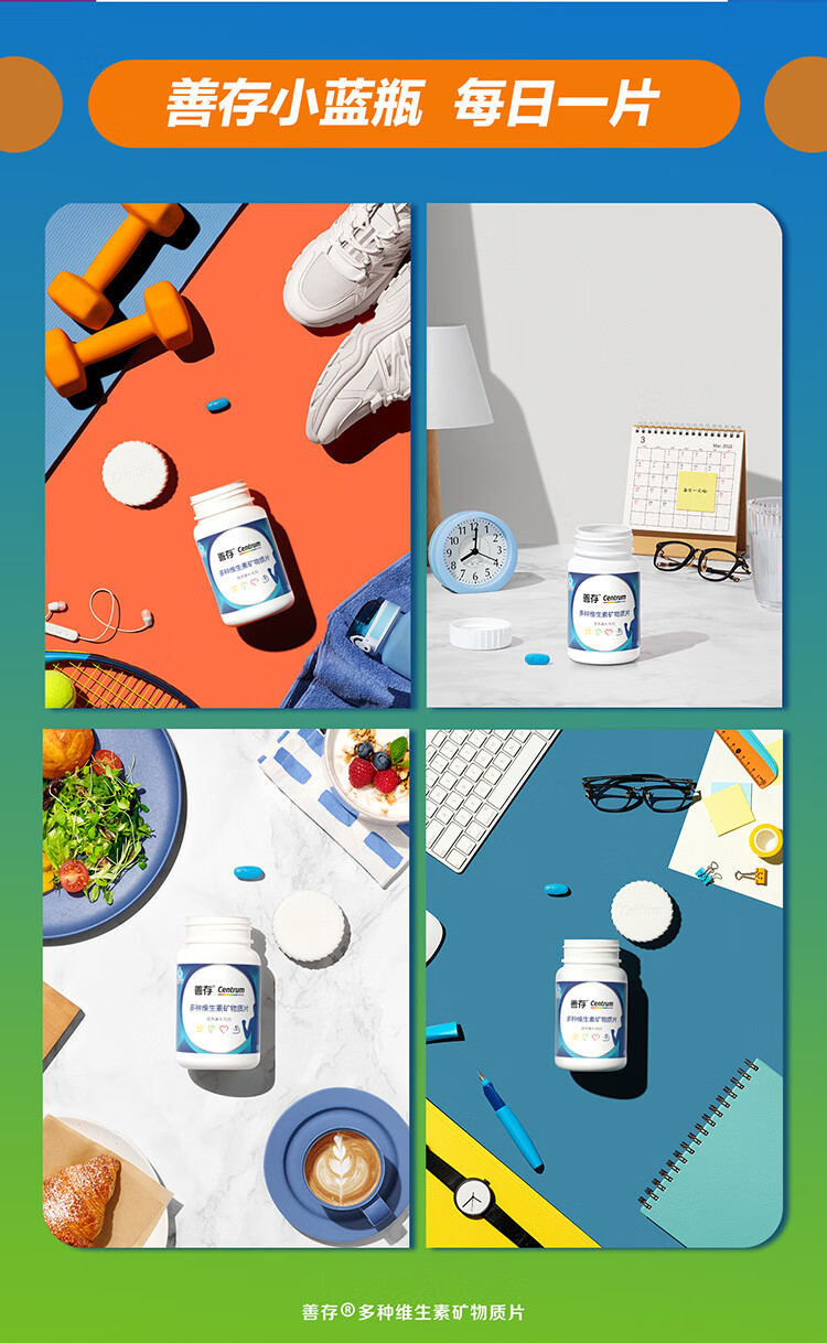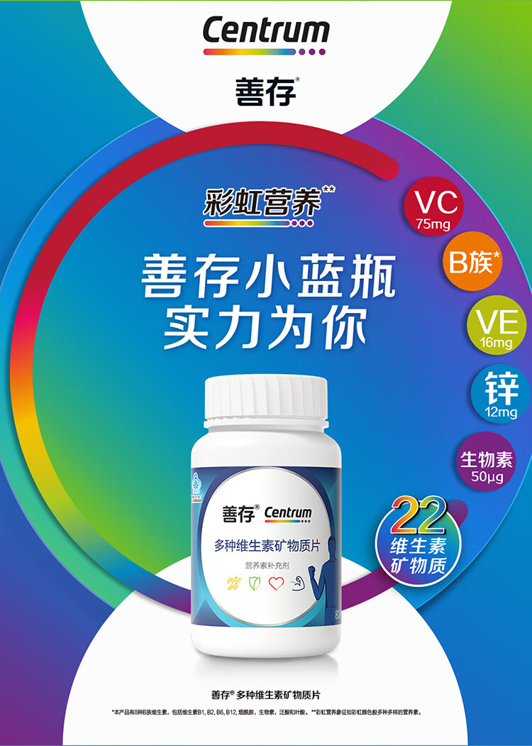 善存男士成人多种复合维生素b族矿物质 锌镁片锌硒片 维生素C 维生素e 含烟酰胺叶酸 vc 维bed 小蓝瓶 80片