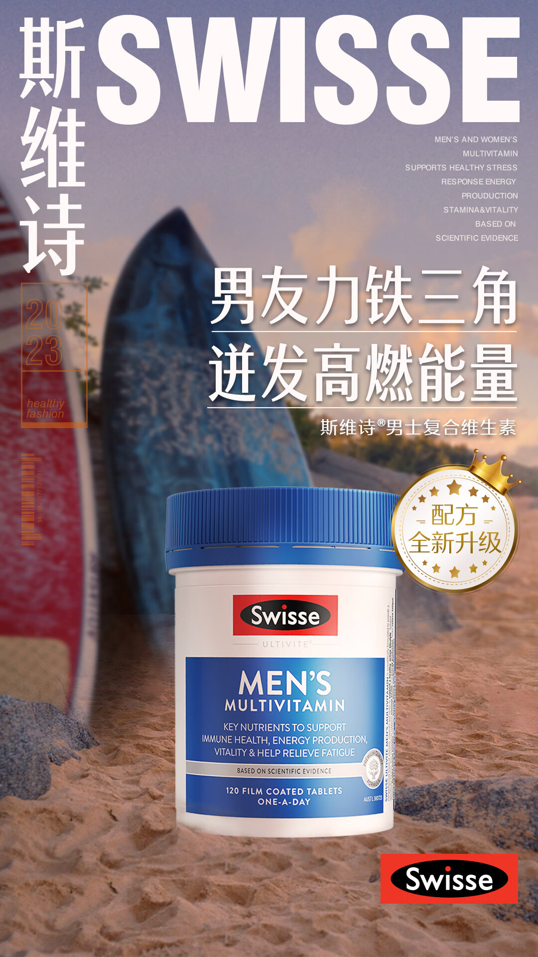 Swisse斯维诗 男士复合维生素120片/瓶 含45种营养素 B族维C锌 番茄红素 提高耐力活力 配方全新升级