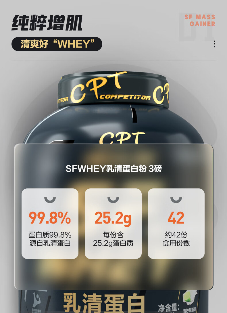 康比特SFWHEY乳清蛋白粉 79%高蛋白含量低脂补充蛋白质健身蛋白粉增肌粉健肌 乳清蛋白3磅/1.36kg 青柠酸奶味